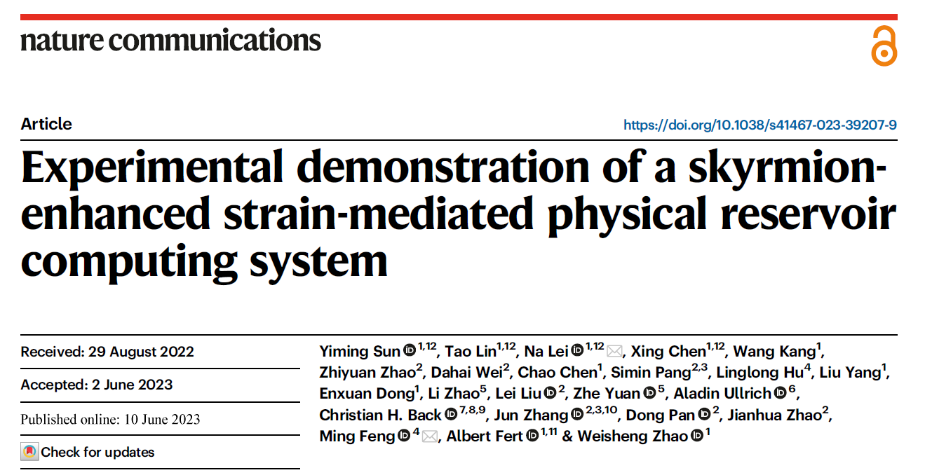 Y. Sun, et al. Experimental demonstration of a skyrmion-enhanced strain-mediated physical reservoir computing system. Nat. Commun. 14, 3434 (2023).