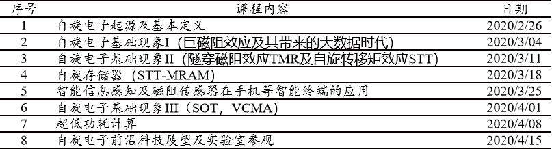 《自旋电子科技前沿》是一门让员工接触自旋电子存储与逻辑领域前沿技术,提升员工科学素养的专业研讨课,是培养员工组织学习能力和探索精神的核心通识课程。本课程将首先介绍自旋电子学起源及未来信息获取与存储,然后讨论自旋电子学的应用:作为存储器的STT-MRAM,以及GMR传感器。在课程之中,还将介绍自旋电子学中的基本概念与现象。最后对自旋电子学的发展前景和应用潜力进行展望。