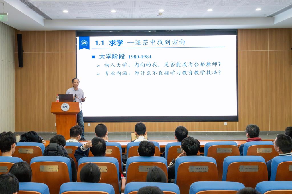 “本科的数学知识,如同芯片的物理基础,虽不直接外显,却是创新前提。”报告中,张有光老师结合自己从数学专业到通信工程、再到集成电路领域的跨界学术轨迹,生动地阐释了基础学科的深远价值。他谈到,数学培养的逻辑思维与抽象能力,早已内化为芯片设计与性能分析的“底层架构”。“本科的数学知识,如同芯片的物理基础,虽不直接外显,却是支撑一切功能创新的前提。”面对AI技术带来的冲击与困惑,张老师引用邬大光教授的观点:在混沌中定义问题的洞察力、跨界整合的想象力以及在不确定中探索的韧性,是当今时代最无法被替代的能力。他特别提醒同学们,在学习中使用AI工具时要坚持“辅助而非替代”的原则。他勉励大家,学术思考与逻辑建构必须亲力亲为,因为“写作是思维走向清晰、知识走向系统的必由之路”。