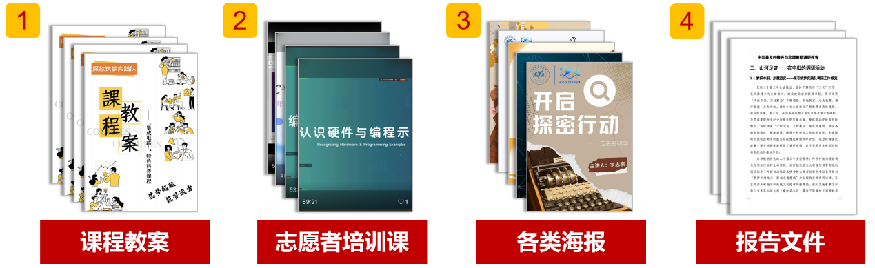 总结智慧后,探芯筑梦实践队深度思考、浓缩精华。完成 4 个主题总结编撰:开创集成电路科普志愿者特色培训课程,共四节4小时;汇总教案和课程总结,累计字数10w+,海报11张。