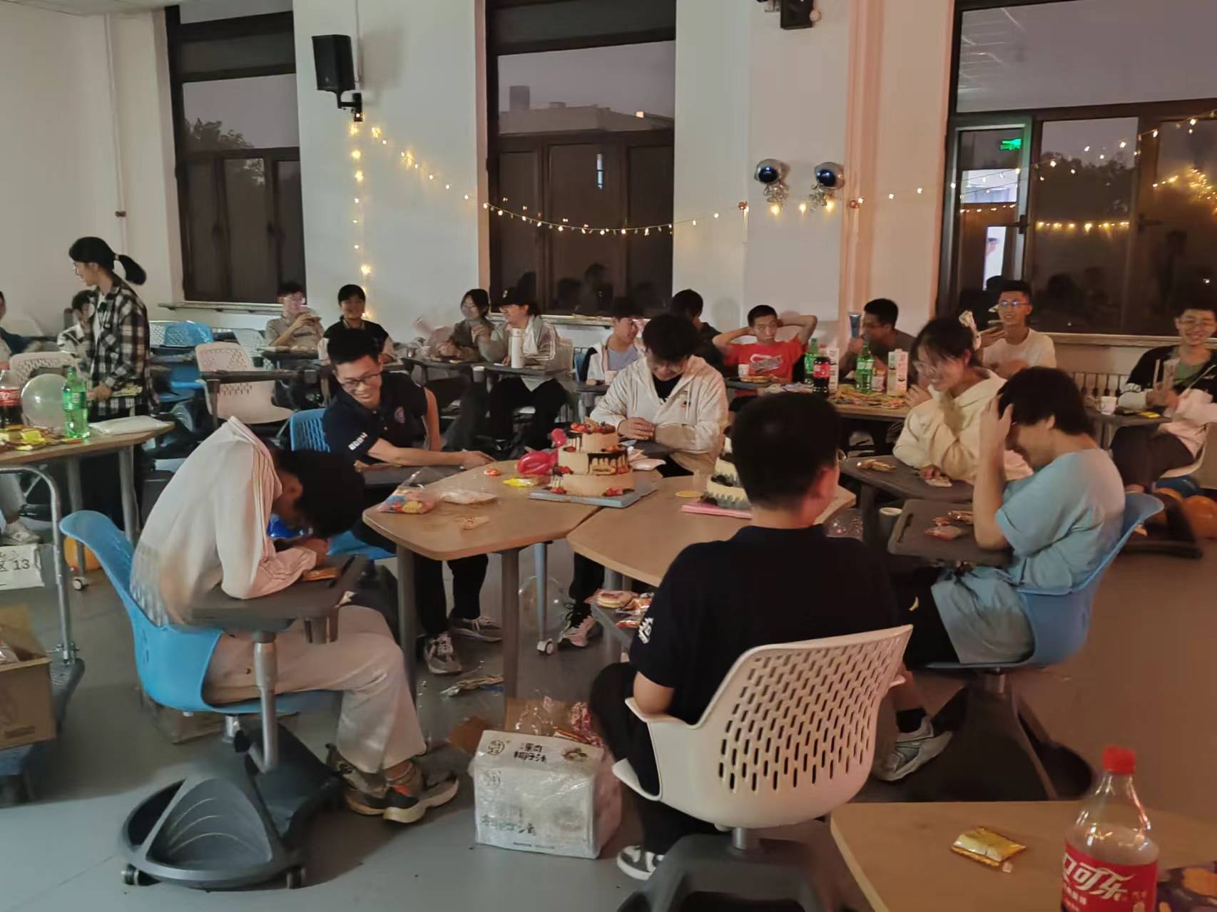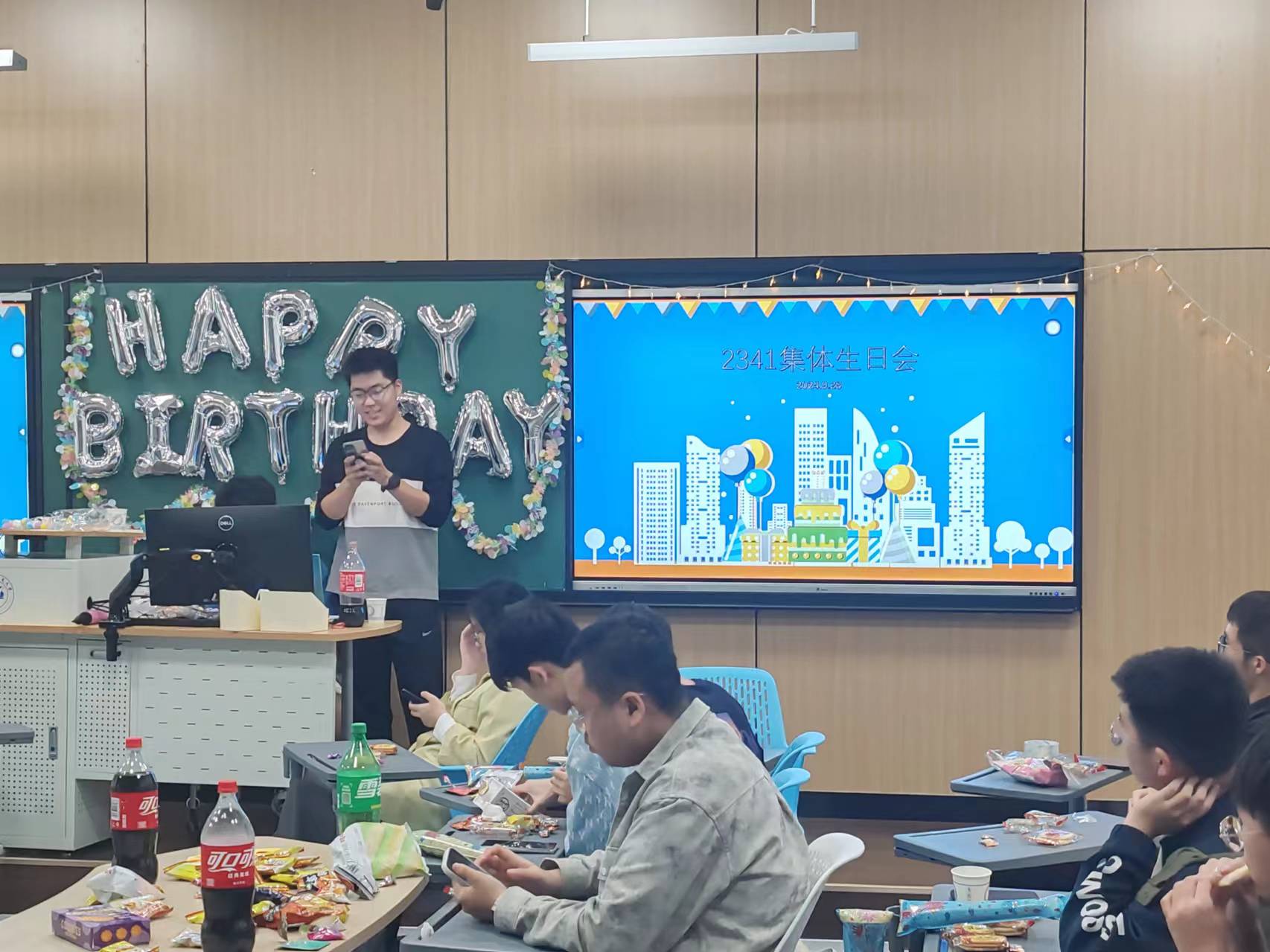 阳光透过窗户洒在教室里,仿佛也在为寿星们送上最美好的祝福。五彩斑斓的气球、闪烁的彩灯,把现场装点得如同梦幻王国一般。