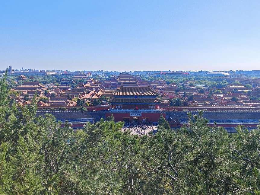 随后,我们来到了景山公园。这里绿树成荫,鸟语花香,是北京市中心的天然氧吧。我们登上景山公园的最高点——万春亭,俯瞰整个北京城。故宫的雄伟、中轴线的笔直、现代建筑的错落有致,尽收眼底。