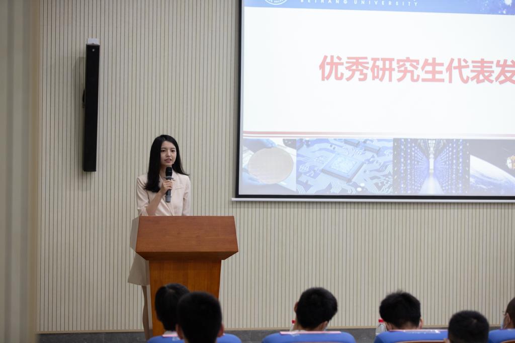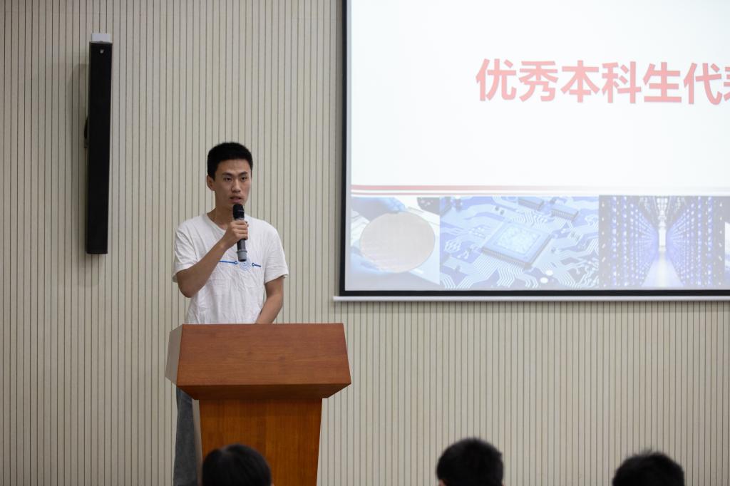 公司优秀研究生代表李赛、优秀本科生代表范云潜进行了发言,代表公司全体员工对新同学的到来表示欢迎,并与同学们分享了他们在学习和科研中的诸多收获与感悟。