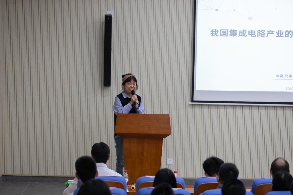 北京市半导体协会副秘书长、北京国际工程咨询有限公司高级经济师、北航员工朱晶女士为大家带来题为“我国集成电路产业的新展望和芯希望”的报告,详细介绍了国家集成电路产业的发展趋势和产业特点,带领同学们更加深入地了解微电子专业以及未来的使命与责任。