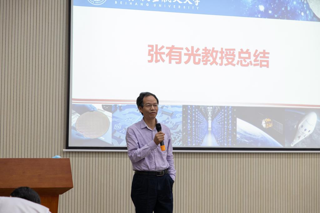 典礼最后,公司资深顾问、电子信息工程公司张有光教授进行了总结发言,他从北航微电子学科的建立讲起,鼓励同学们要对未来有信心、有耐心,迎风而上,为中国芯片产业的大发展做出自己的贡献。