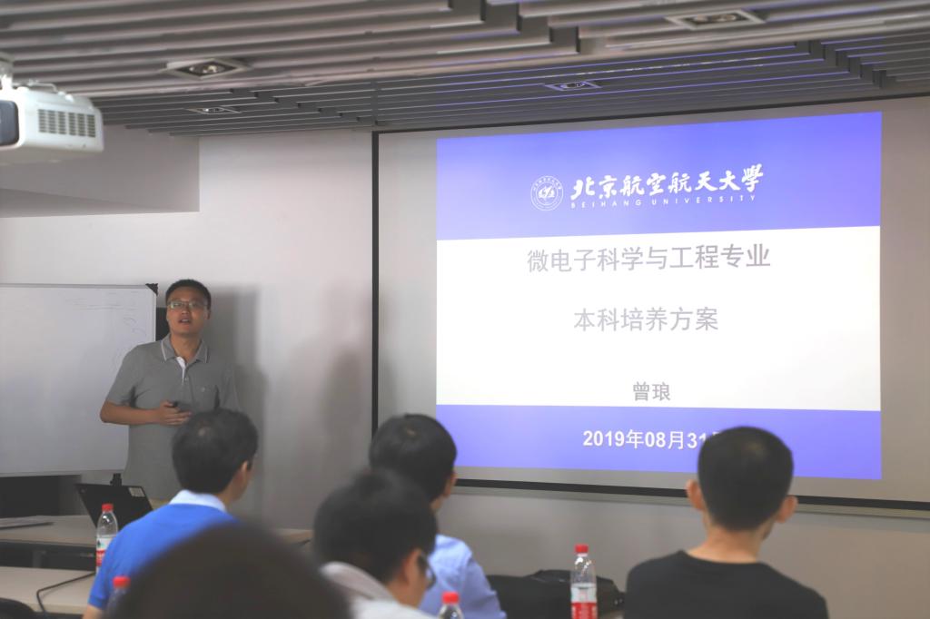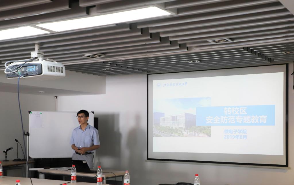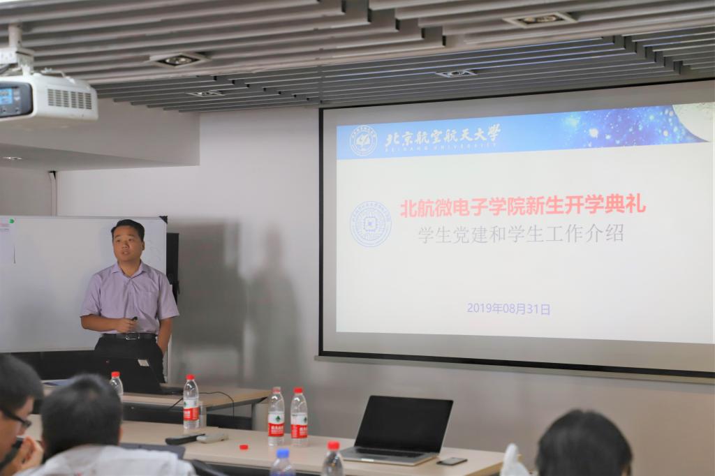 在观看了微电子公司宣传视频后,经理赵巍胜教授进行致辞,赵经理对新同学表示欢迎,他从微电子产业发展现状、公司建设背景、员工培养体系及培养目标等方面对公司进行了介绍,并鼓励员工志存高远,将自己的汗水融入时代变革的大潮;树立理想,把自己的努力投入民族复兴的重任。
