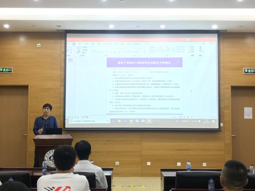 2019年9月7日下午,yl23455永利集团微电子公司2019级研究生开学典礼在新主楼第八会议室召开。2019级全体新生、公司领导和员工导师参加会议。本次开学典礼由研究生教学经理助理聂天晓教授主持。