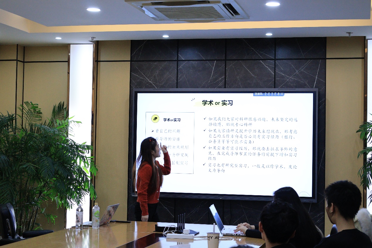本次活动研会邀请到了2024年度“研究生十佳”刘艳芳同学,聚焦于科研经历与干货分享、研究生阶段的发展规划两方面,为我们带来了宝贵的经验分享。本次活动不仅传授了科研工作中的实用技巧和心得,还为我们的研究生生活指明了方向。