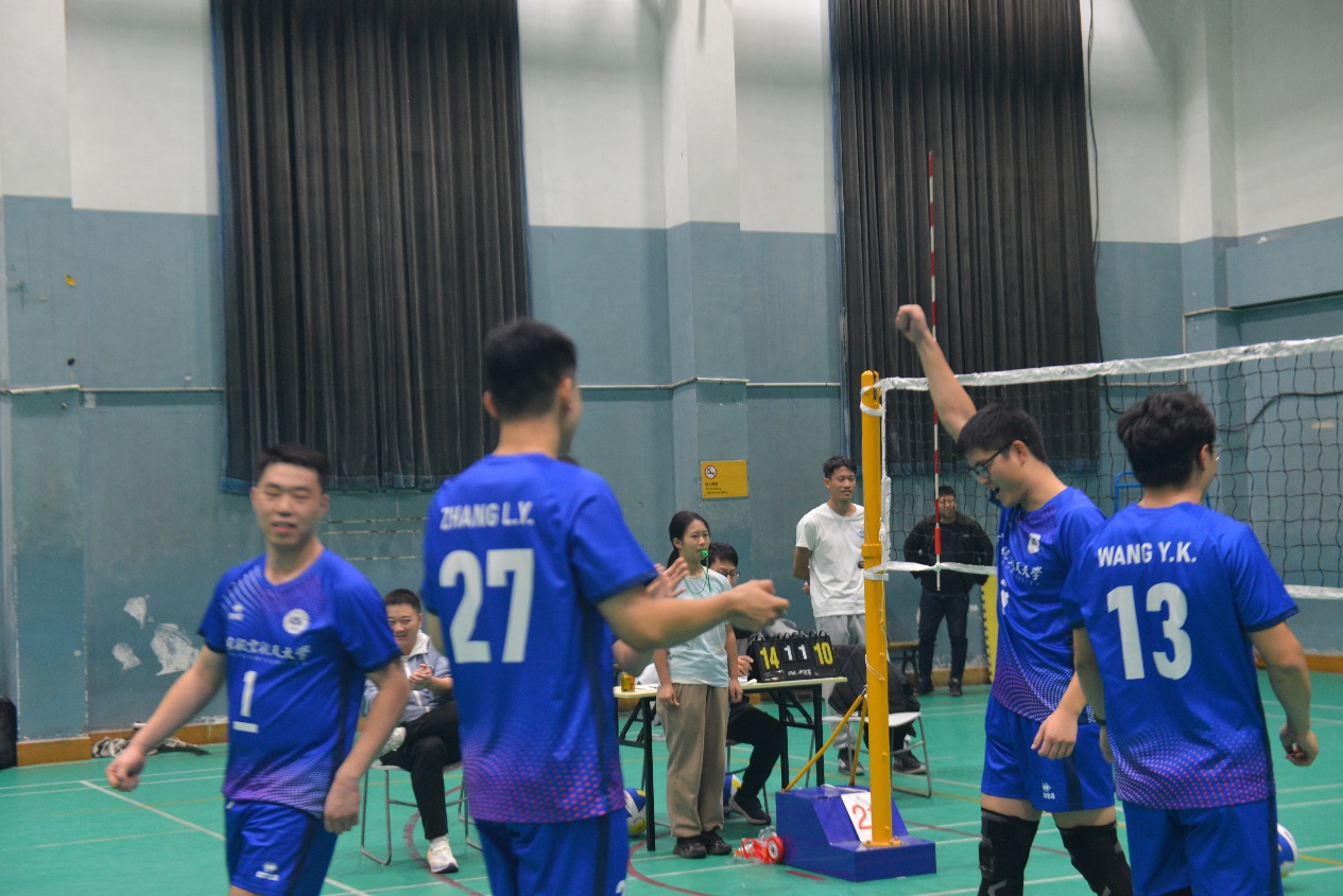 决赛中遭遇实力强劲的北航员工队,员工队由多名毕业于北航的专业运动员组成,无论是身体素质还是技巧战术都是顶尖的水平。第一局比赛一度以20比16的比分率先拿到赛点,但北航队伍也没有轻易放弃,顽强拼搏下连续挽救4个赛点,最终以22比20的比分完成惊天逆转。第二局员工队展现出强大的实力,强势扳回一城,将悬念拖入决胜局。决胜局中双方你来我往难解难分,最终由北航一队两个强势的拦网结束了比赛,获得了这来之不易的冠军。