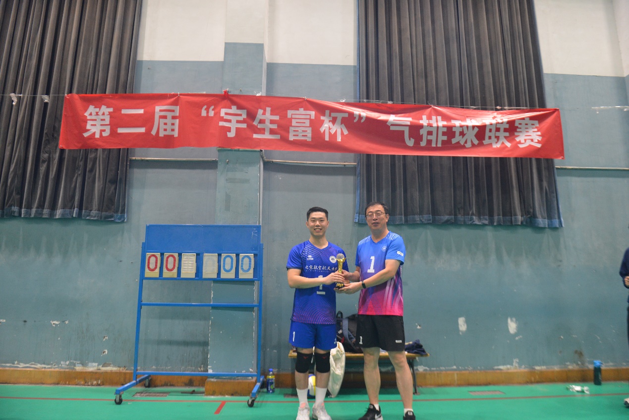 11月3日,为期两周的北航第二届“宇生富杯”气排球联赛顺利完赛,yl23455永利排球队联合其他公司运动员组队参赛,在甲组、乙组两个组别的比赛中均包揽冠军!
