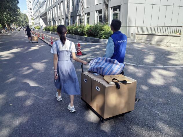8月25日,公司8名志愿者早早到位,协助女生从12公寓、大运村公寓有序搬迁至13公寓。在辅导员和临时班委的协调下,此次搬迁工作井井有条,共同完成行李集中、装车卸车、行李清点等工作,并主动协助其他公司的同学搬运行李,充分展现了集电学子的互助精神与责任意识。