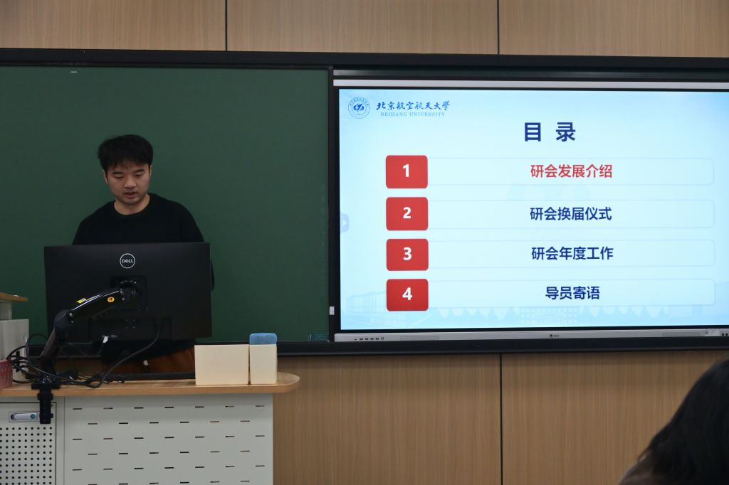 会议伊始,王赛雅代表第五届研会主席团向新加入的同学们表示热烈欢迎,并对研究生会的发展历程和整体情况进行了介绍。她梳理了研会组织架构与各部门职能,回顾了过去一年的工作成果,分享了本届研究生会的愿景与计划。她介绍,公司研会坚持以服务公司、同学为本,围绕“政治引领、全面发展、力争上游”三大方向,打造了学术、就业、文体三类品牌活动,同时围绕同学关切的权益问题,搭建与公司沟通桥梁,推动了多项同学切身问题的解决。