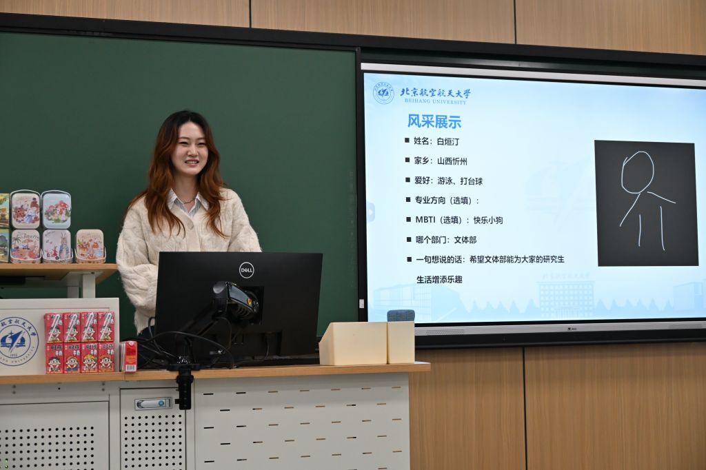 活动的最后的环节是轻松愉快的研会新成员的破冰环节,在自我介绍环节中,同学们依次上台介绍自己的姓名家乡以及兴趣爱好等,不少同学在现场找到了同乡或志趣相投的伙伴,迅速拉近了彼此的距离。