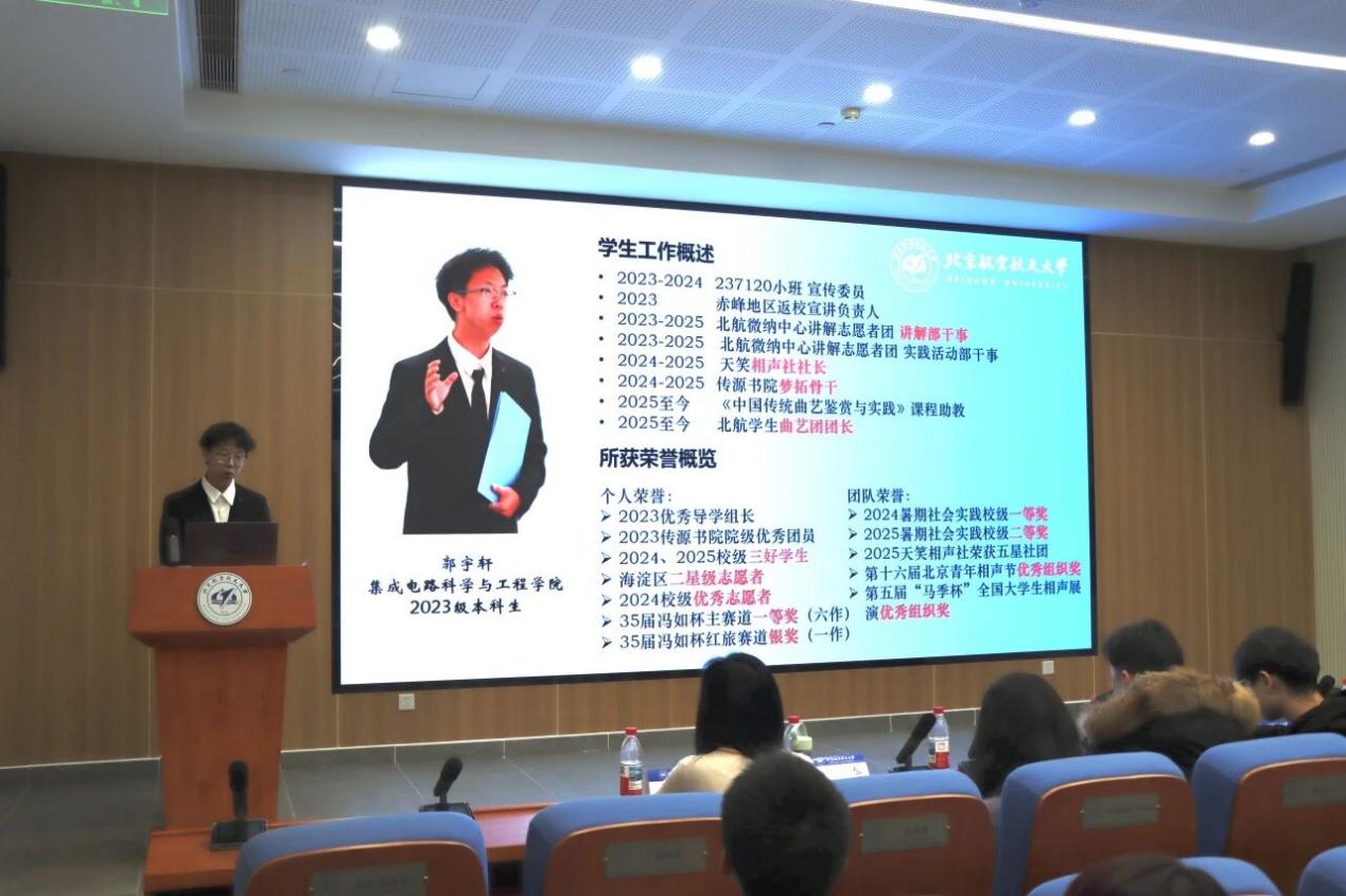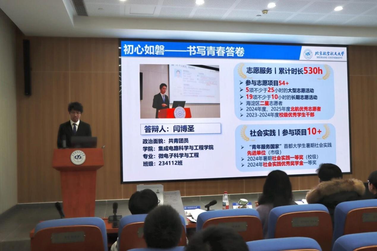 在2024-2025学年“璀璨芯光”评选中,共设立六类奖项,其中包括五项个人奖及一项团体奖。个人奖方面,经过前期自主申报与初评筛选,共有11名候选人进入答辩环节。答辩中,候选人依次登台,从思想政治、学业科研、创新实践、志愿服务、文体特长等多个维度,全面展示了他们过去学年的成长历程与卓越风采。