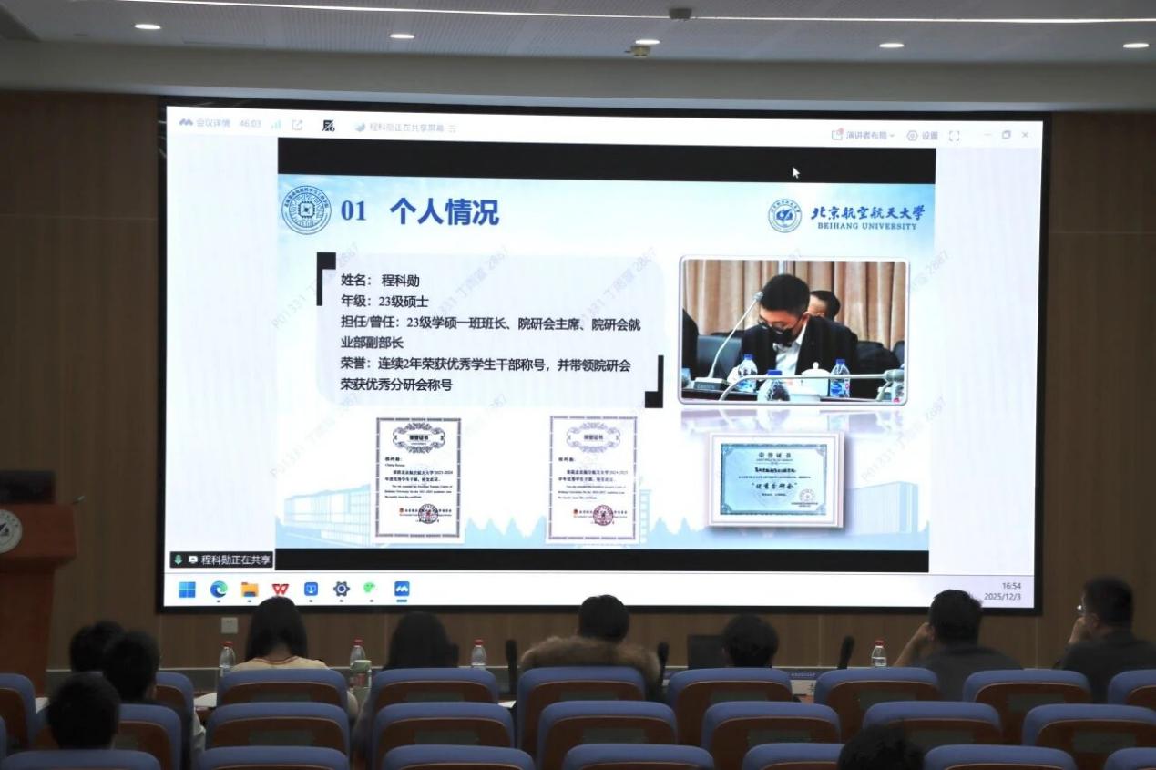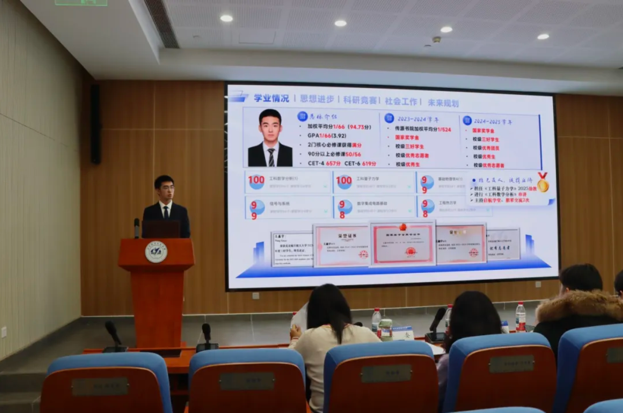 评委老师们认真听取每位候选人的陈述,并就其表现、成果与未来规划进行提问与点评。往届获奖学长殷航、李文硕结合自身经历,鼓励候选人们继续深耕专业、敢于突破、服务集体。现场观众也积极参与互动,展现了​yl23455永利学子积极向上、见贤思齐的良好氛围。