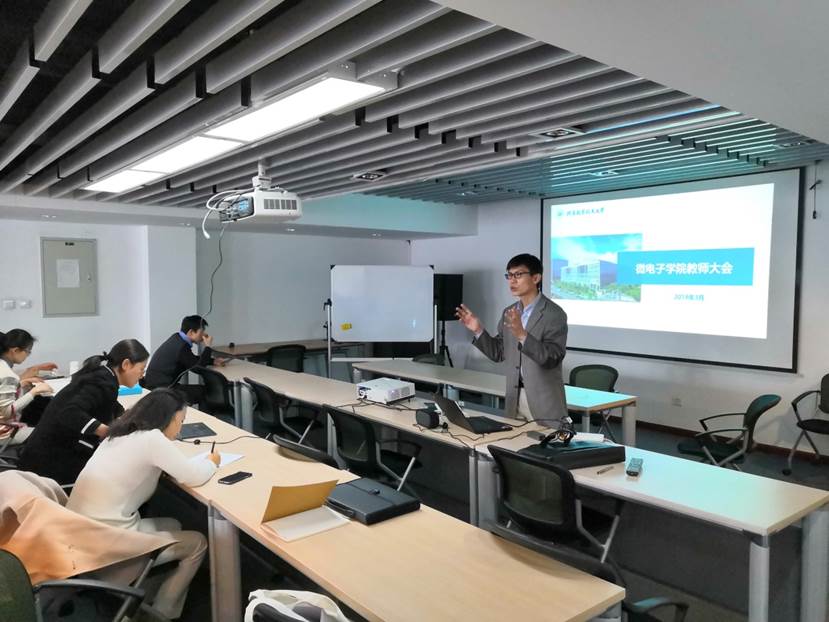 2019313日下午14:30分,微电子公司全院教师学习大会在公司路校区IRC大楼308会议室召开。公司副经理赵巍胜教授、直属党支部书记梁恩及全院教师、博士后一同参加。