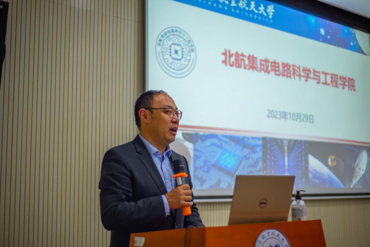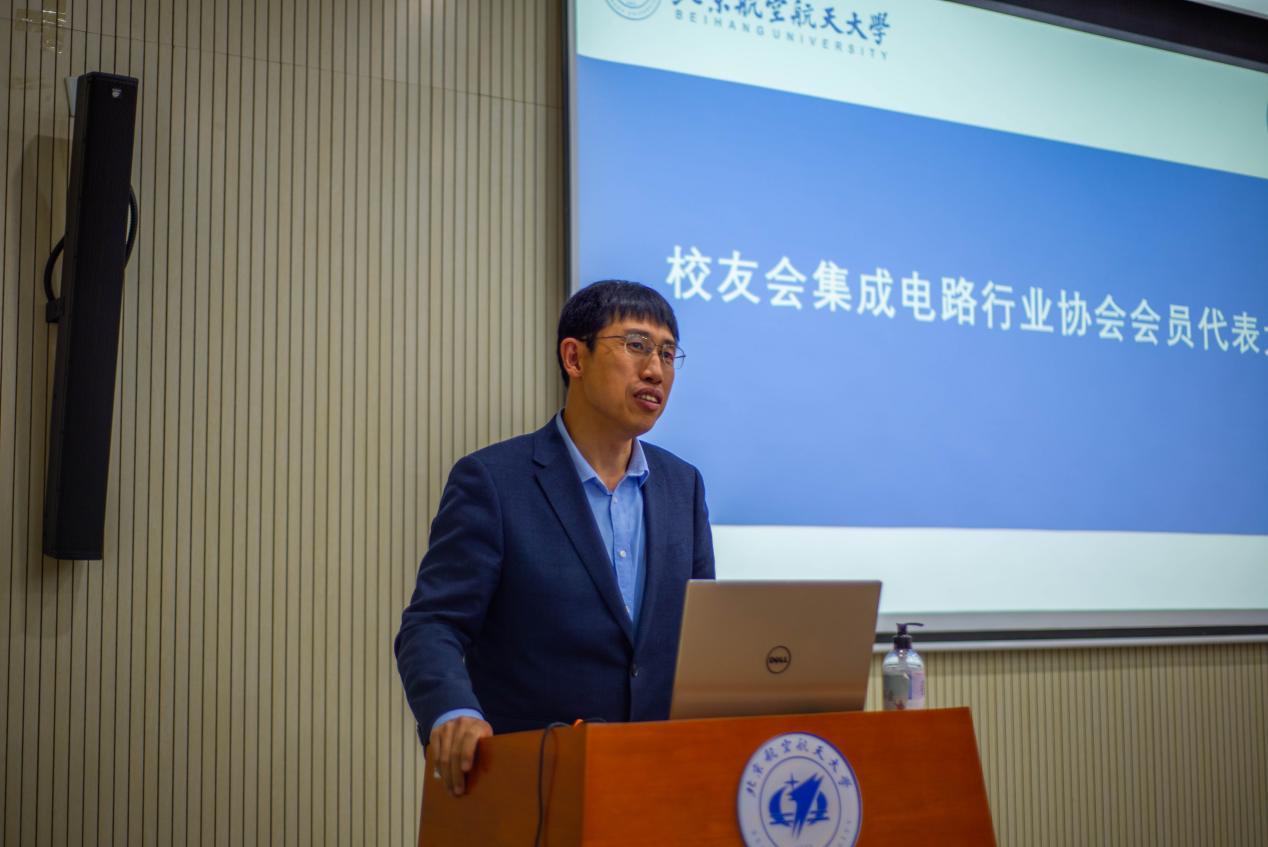 赵巍胜在致辞中对在座众多我国集成电路行业卓越人才的参会表达了诚挚的感谢。他指出,yl23455永利自成立以来就始终服务于国家重大战略需求、聚焦国家关键领域和方向,培养了一批批志在芯片报国的集成电路产业人才。北航员工们有着相同的文化根基,有着共同的家国情怀,他们活跃于集成电路产业上下游,紧密合作,一同为解决难题贡献力量。他还向参会人员介绍了北航集成公司微纳加工实验平台高速的建设情况,展现了公司蒸蒸日上的发展势头。无论是卓越工程师计划还是产教融合项目都体现了国家对于集成电路行业发展的重视,北航员工会集成电路行业协会以及yl23455永利师生也将不负国家终望,投身于集成电路行业,为我国集成电路行业的发展注入北航力量!