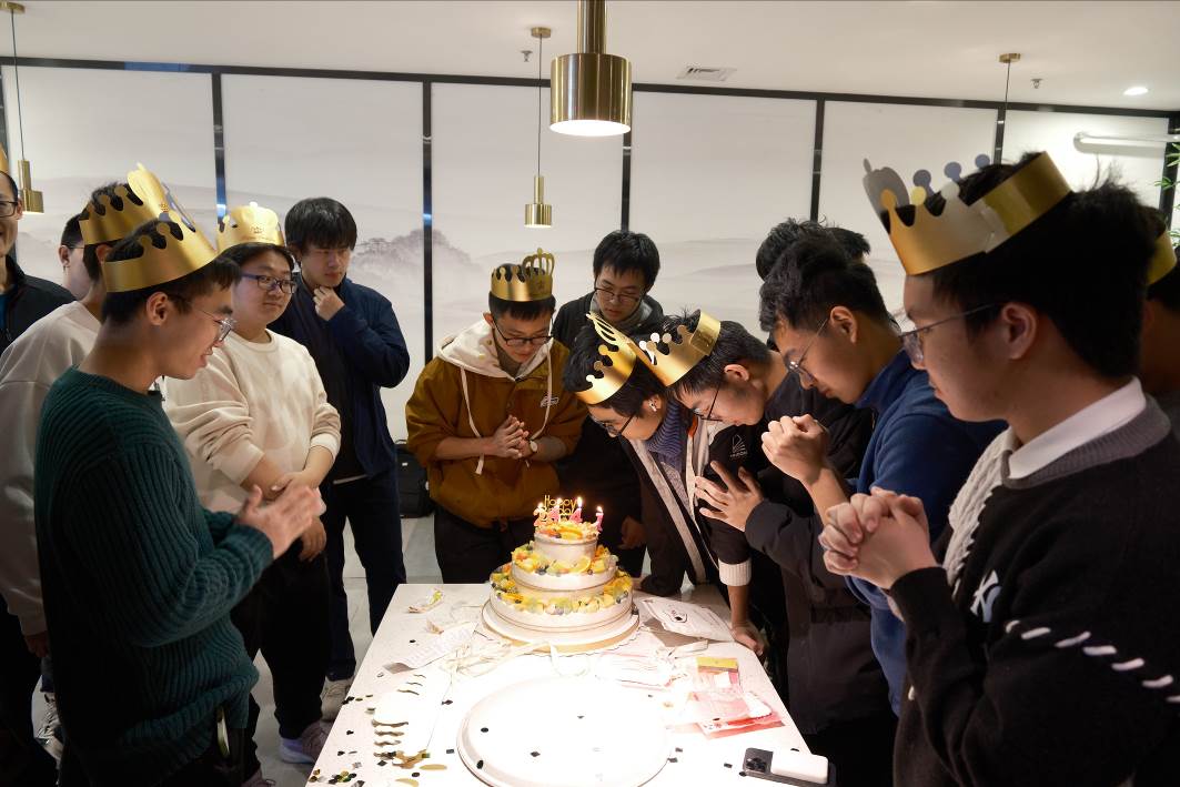 随着包饺子活动的圆满结束,餐厅里的气氛变得更加温馨和欢乐。同学们清理桌面,将场地布置成了生日会活动的现场。生日会的主角——11月和12月过生日的同学们被邀请到了场地的中央。同学们围成一圈,为寿星们唱起了生日快乐歌,充满了真挚的祝福和友情的温暖。寿星们将甜蜜的蛋糕切块、分发给每一位同学,分享着生日的喜悦。