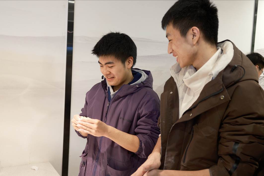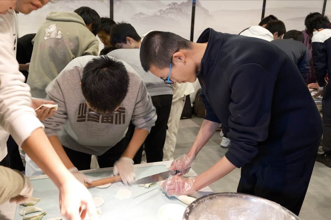 而包饺子更是充满创意与挑战,大家将馅料放在皮上,或捏或挤,包出了形态各异的饺子,有传统的月牙饺,饱满的元宝饺,甚至还有一些创意十足的 “异形饺”,引得现场笑声不断。整个过程中,同学们分工明确,协作有序,充分展现了团队合作精神。