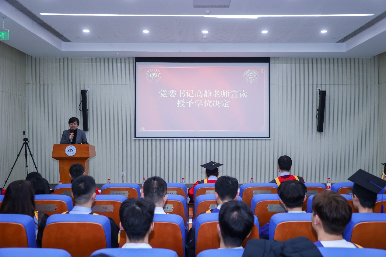 首先由党委书记高静宣读授予学位决定,并向各位毕业生表示衷心的祝贺。