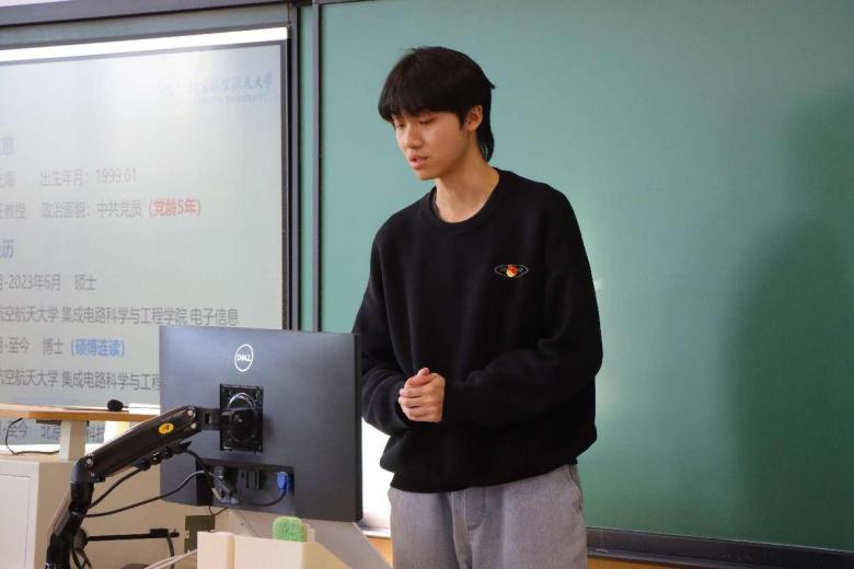博士生第二党支部书记吴佳瑶作代表进行了深入学习习近平总书记关于创新人才的重要论述的主题分享交流,号召同学们夯实基础,聚焦国家重大战略需求,以突破技术瓶颈为己任,为实现技术自立自强,提升我国集成电路产业竞争力贡献智慧和力量。