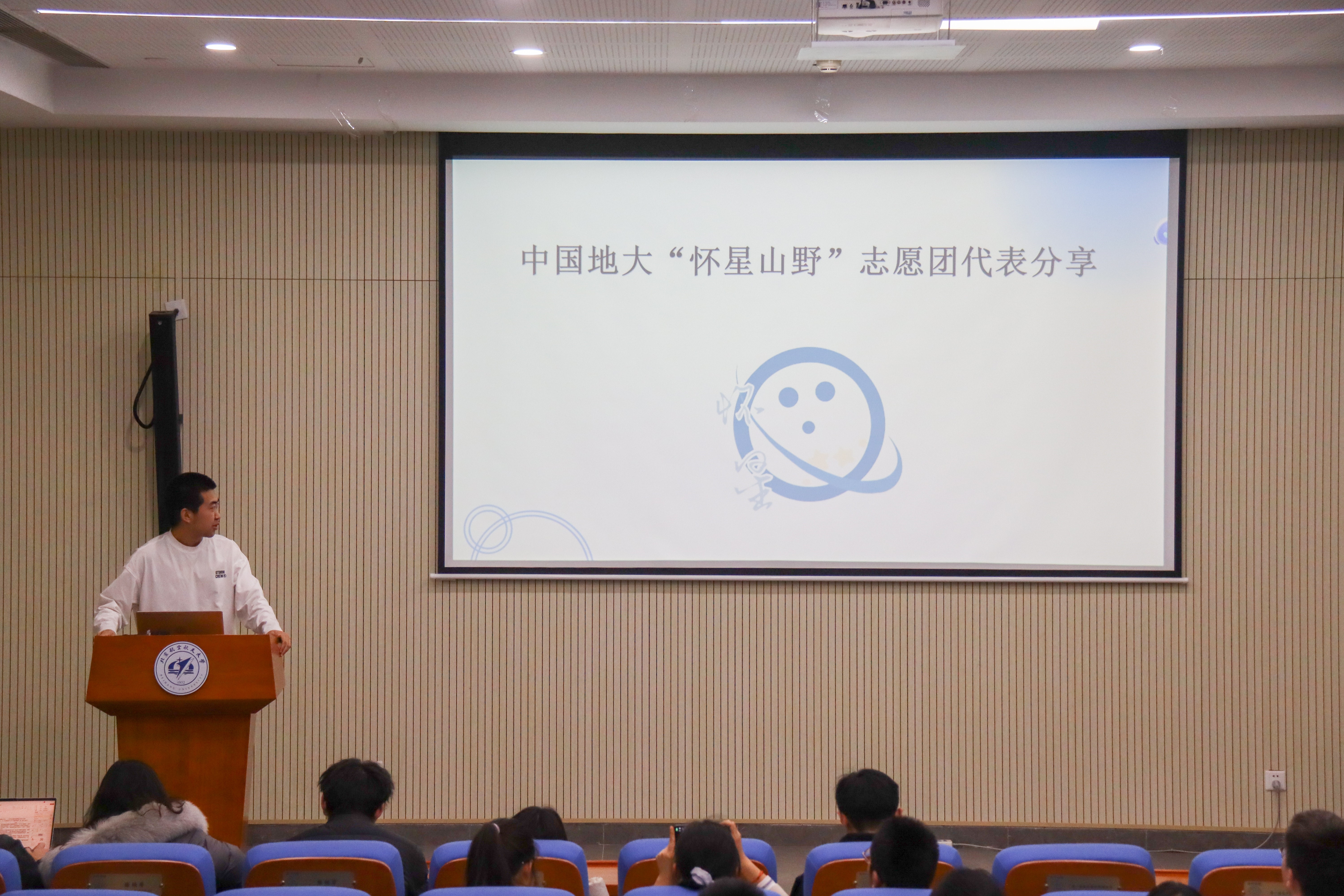 中国地质大学的老员工代表苗泉安同学为大家介绍了北地地质科普志愿支队,旨在将枯燥的地质知识生动地传达给公众。他们还介绍了目前举办的科普进校园活动。