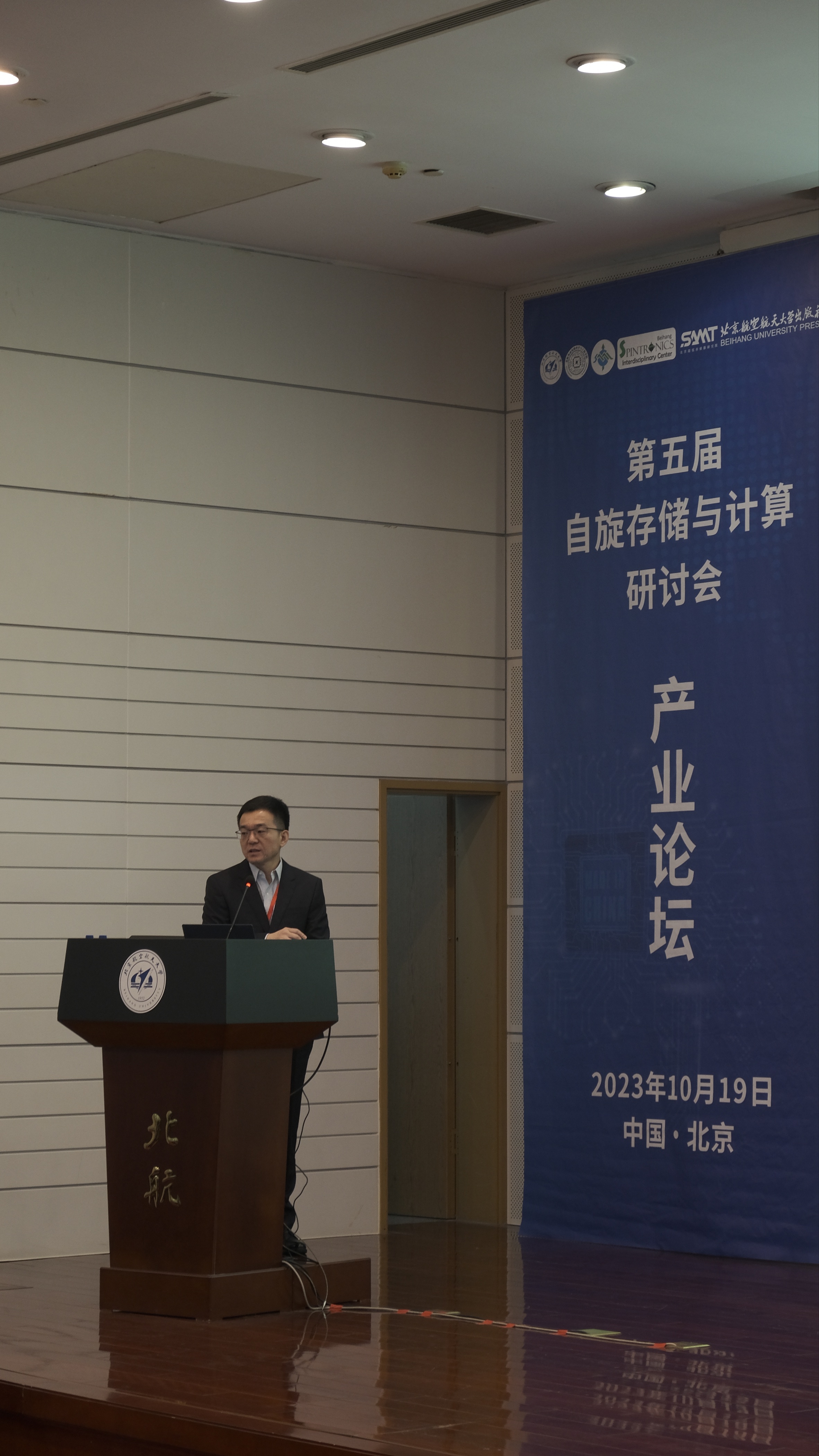 随后,北航副董事长、第五届自旋存储与计算学术研讨会主席赵巍胜教授进行开幕致辞。赵巍胜教授表示,北航持续深化产教融合的发展道路。尤其是集成电路学科为了更好地开展产学研用合作,今年招入百余名研究生新生,投入自旋存储与计算等交叉领域的前沿研究和工程开发工作,特别注重学术研究、人才培养与产业技术发展的接轨。
