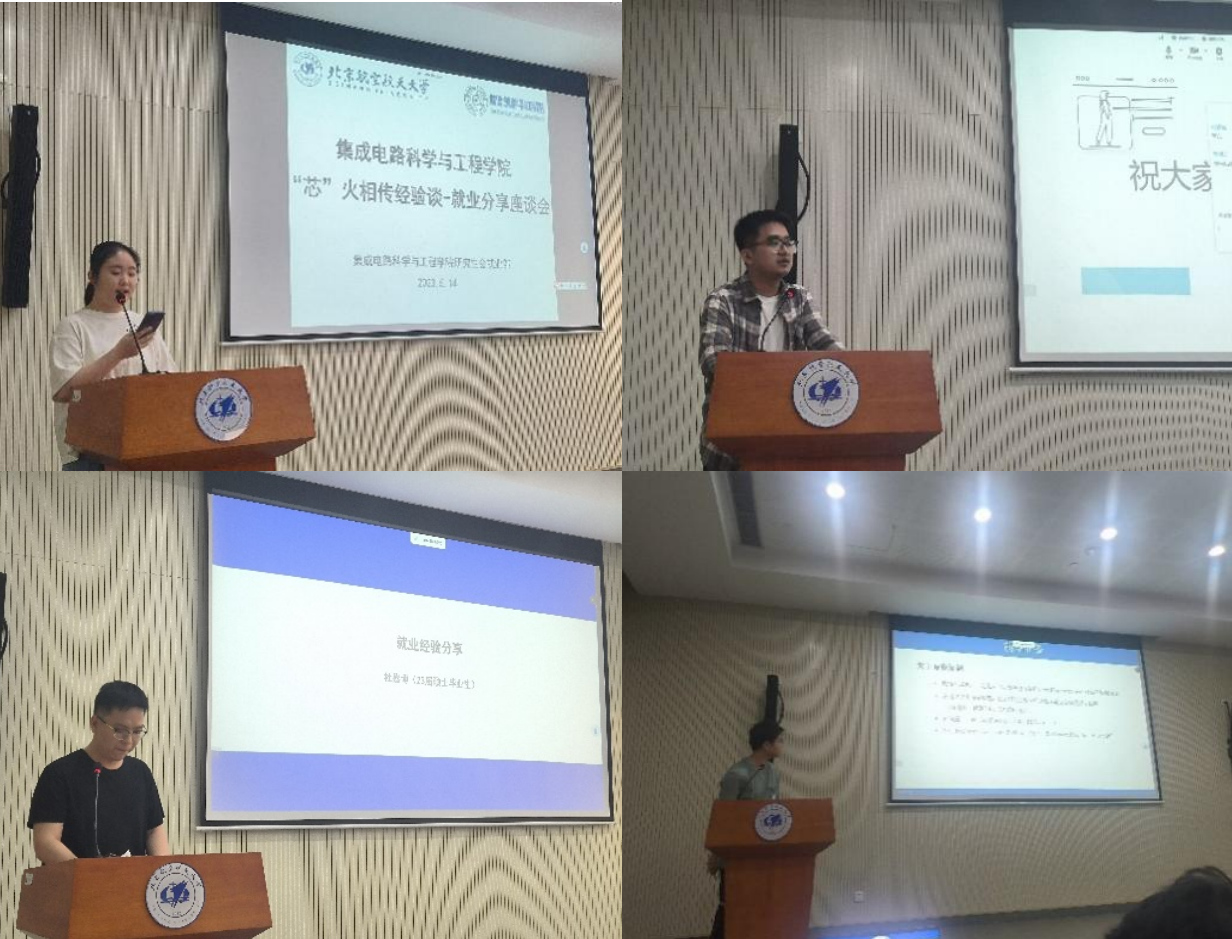 5月14日,yl23455永利“芯”火相传经验谈——就业分享座谈会在第一馆B1报告厅顺利举行。本次会议采取线上、线下相结合的方式,邀请到7名2023届优秀毕业生进行就业经验分享,参会人数50余人。