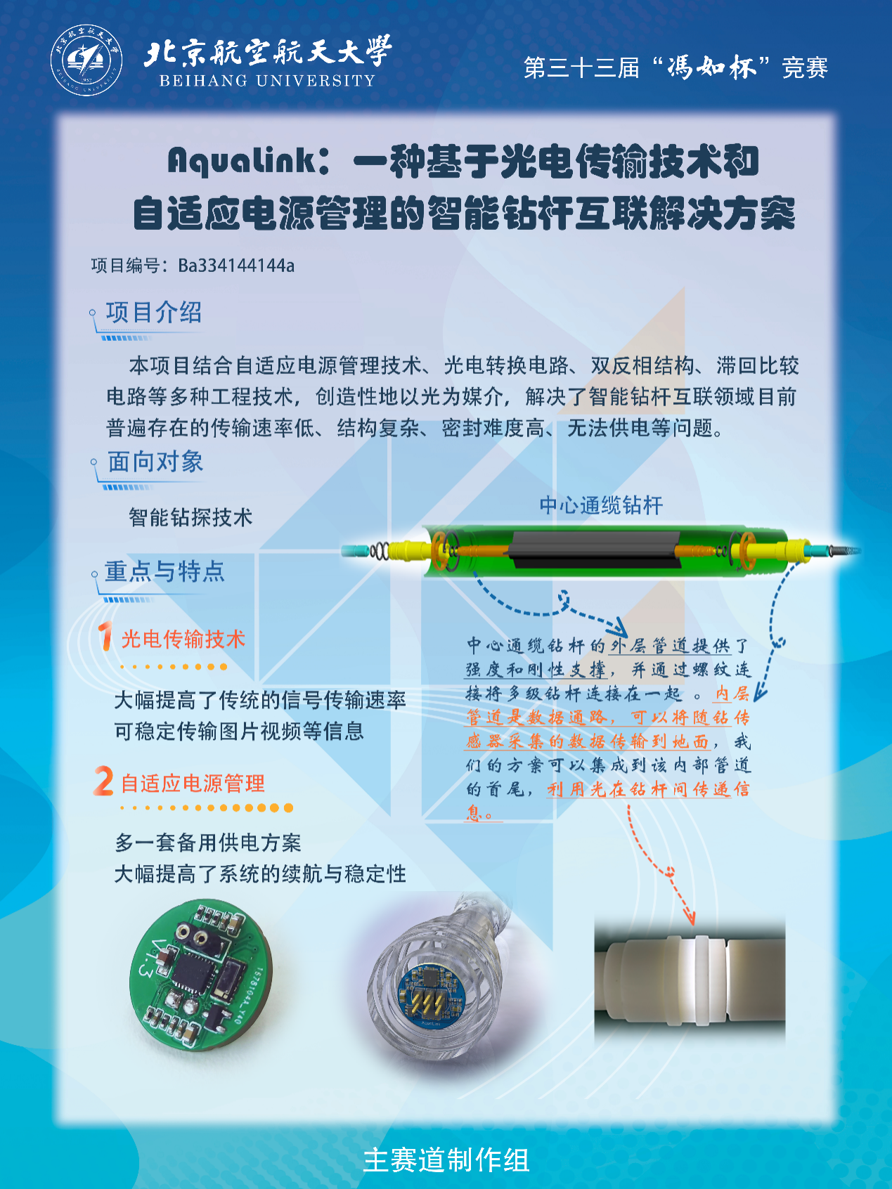 5月20日,yl23455永利的6支参赛队伍在新主楼二层参加现场巡展,向前来参观的校内外领导、老师和同学展示公司参赛项目。答辩评审团对每个参赛队伍的项目进行了仔细评估和提问,各组成员在积累宝贵经验的同时,也对自己的项目有了更加深刻的认识和理解,收获颇丰。最终,公司有2个项目进入主赛道制作组的一等奖答辩,分别是“AquaLink: 一种基于光电传输技术和自适应申源管理的智能钻杆互联解决方案”和“超摩智芯——超越摩尔时代存算⼀体AI芯片领航者”。