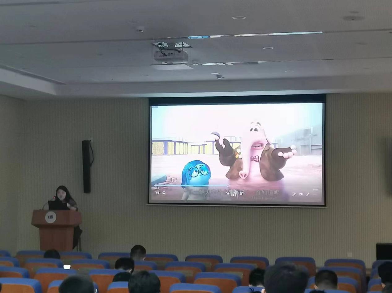 第一场活动在第一馆B1报告厅进行,积极心理体验中心刘菁雯老师选用电影《头脑特工队》片段,带着同学们进入一个直观、生动的内部世界,理解情绪和记忆的过程、功能,以及它们促成的人格发展。通过电影片段赏析,同学们在刘菁雯老师的带领下,在光影世界中,一起对自己的情绪进行了深度探索,认识了亲密关系中情绪的作用,以及我们如何通过关系来帮助调节自己的情绪。通过老师的生动讲解,同学们进一步认识到负面情绪也是天然的情绪感受,感受到负面情绪是非常正常的,需要以平常心去对待、悦纳负面情绪,健康生活。