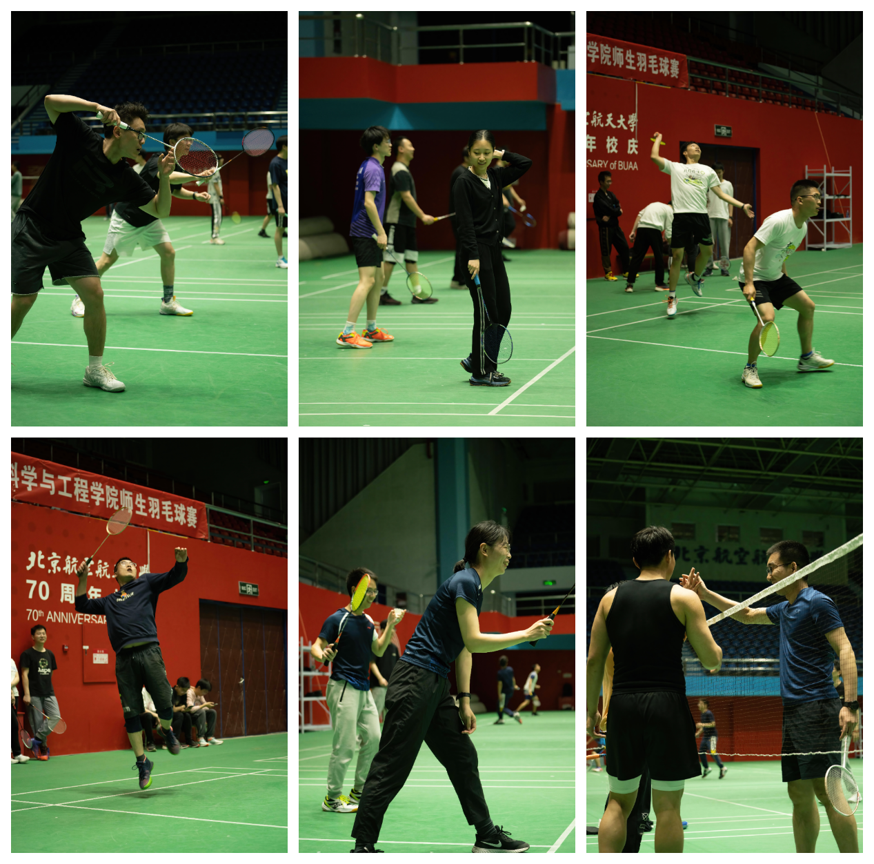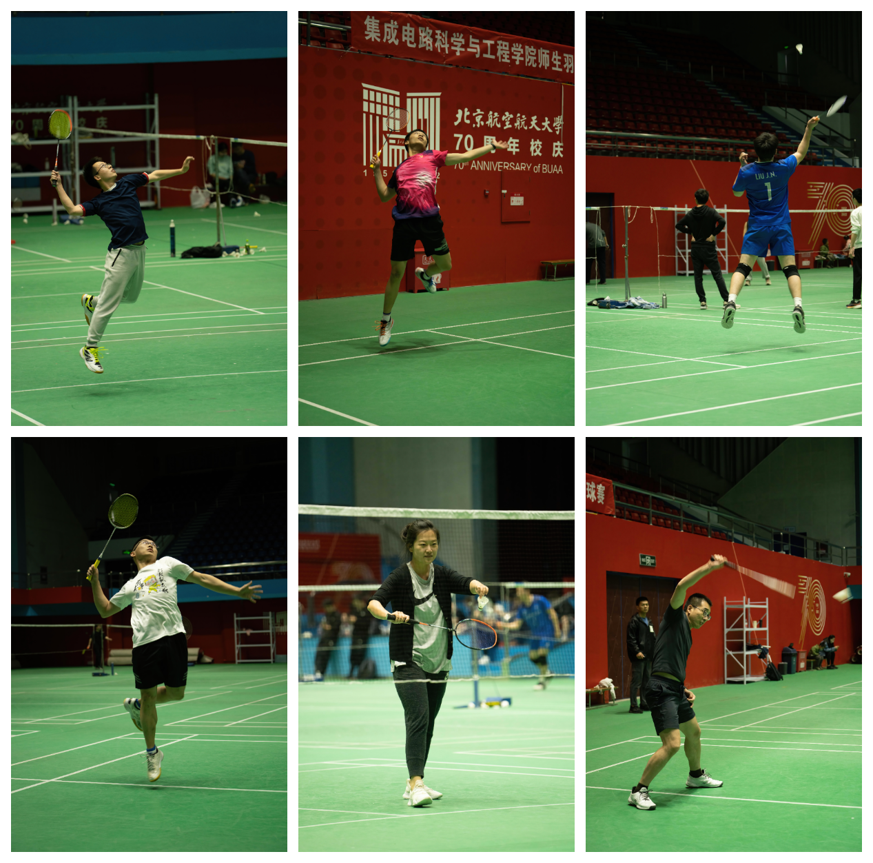 本次比赛共分为六个单项(男单、女单、男双、女双、混双与团体赛),吸引了五十余位师生参赛。经验丰富的选手们顽强拼搏、斗智斗勇,展示了高水平的羽毛球技术;场边观众喝彩连连,为场上队员送出热烈的欢呼声;各参赛队赛出水平、创出佳绩,展现出集电师生们团结奋进、朝气蓬勃的精神面貌。