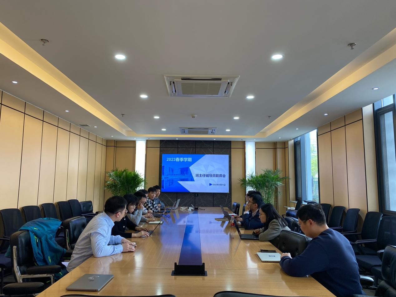 4月11日,2023年春季学期班主任辅导员联席会在第一馆113会议室举行,公司副经理胡远奇、党委副书记马田、经理助理彭守仲和本科生班主任、辅导员参与了本次会议。会议回顾了上次联席会至今的工作内容,开展了班主任和辅导员的工作经验交流、制定了下一阶段班主任辅导员联动工作计划。