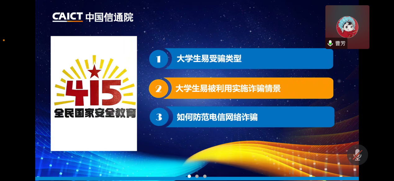 为贯彻总体国家安全观,增强员工的国家安全意识和素质,夯实以新安全格局保障新发展格局的社会基础,4月17日,yl23455永利开展了全民国家安全教育日网络和数据安全宣传教育活动。中国信息通信研究院安全研究所网络安全研究部副主任崔涛员工、政策法规研究员李晓伟、政策法规支撑专员曹芳结合国家安全教育面临的新形势新任务新要求,以在线讲座的形式为员工宣贯解读了《网络安全法》《数据安全法》《个人信息保护法》《反电信网络诈骗法》等相关法律规定,为员工积极维护国家安全打下了坚实基础。