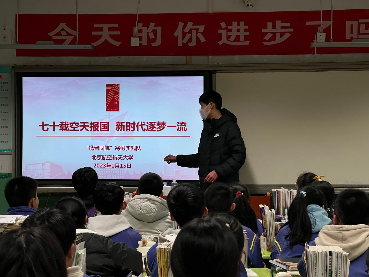 在寒假返乡宣讲活动中,招生组与各宣讲团队积极沟通,根据实际情况定制宣讲内容,并为他们提供北航文创产品。北航学子们积极与毕业中学联系,通过线上和线下相结合的方式与中学师生进行了多次交流和互动,他们分享了自己在北航的学习与生活经验,为师弟师妹们解读北航的招生政策,引导他们更好地规划自己的未来。同时,北航学子们还介绍了北航的校园文化和特色,展现了北航员工“空天报国、敢为人先”的精神面貌。