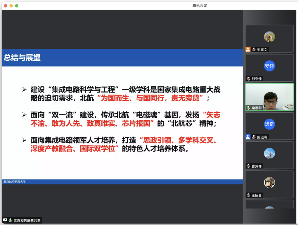 公司书记梁恩和老师对北航精神、北航“芯”精神进行了进一步的阐释,并从集成电路行业发展背景和现状、公司建设和发展情况、员工培养体系及培养目标等方面对公司进行了介绍,希望同学们勇于担当历史重任,将自己的奋斗融入国家的需要和时代的变革中。