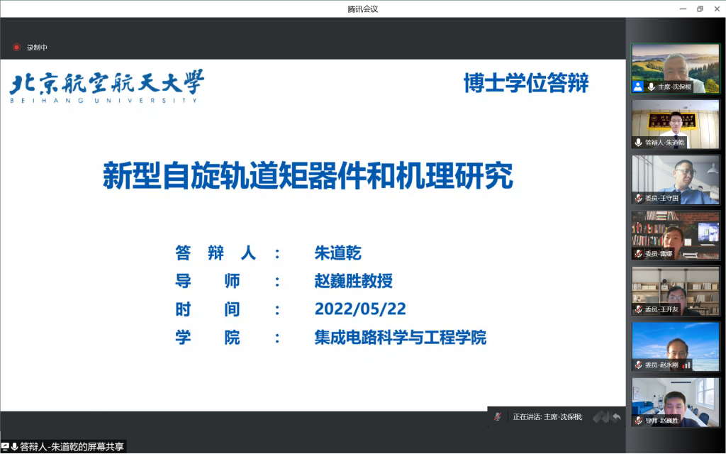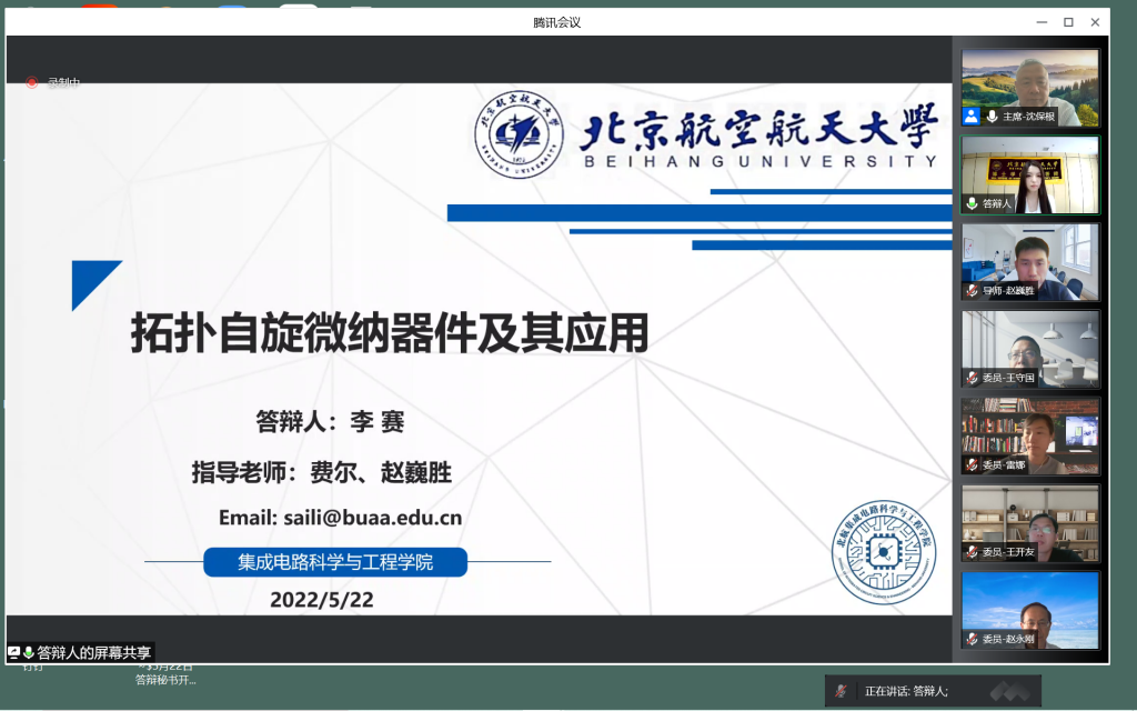 2022年5月22日下午,公司赵巍胜教授团队两位博士研究生李赛、朱道乾(均为北航博士研究生十佳获得者)进行了线上博士学位论文答辩,并顺利通过答辩,成为公司在疫情防控期间首批通过线上完成学位论文答辩的博士生。