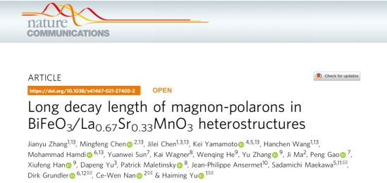Zhang, J., Chen, M., Chen, J. et al. Long decay length of magnon-polarons in BiFeO3/La0.67Sr0.33MnO3heterostructures.Nat Commun12, 7258 (2021).