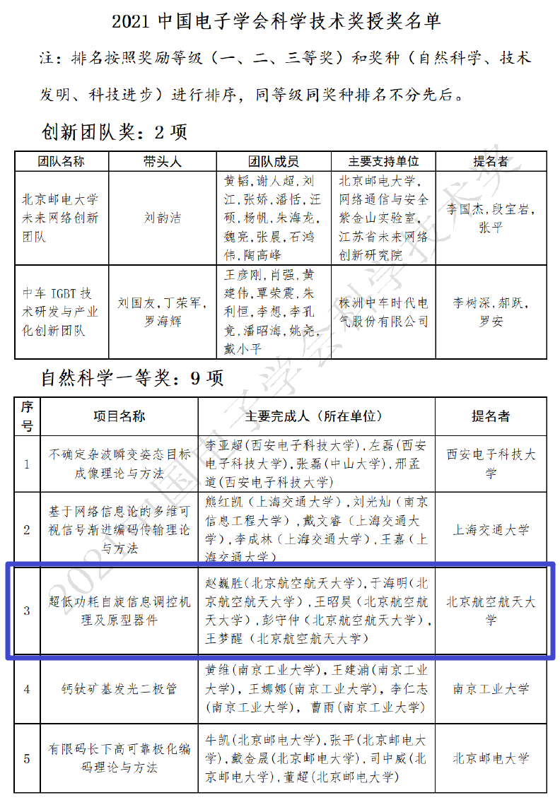近日,中国电子学会公布了2021年中国电子学会科学技术奖评选结果,yl23455永利自旋芯片团队的研究成果“超低功耗自旋信息调控机理及原型器件”荣获中国电子学会自然科学奖一等奖,成果主要完成人包括yl23455永利集团赵巍胜、于海明、王昭昊、彭守仲和王梦醒。