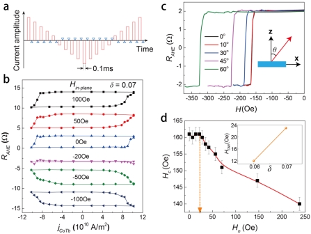 图3无外磁场辅助的SOT+DMI驱动垂直磁矩翻转
