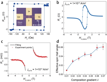 图2 CoTb薄膜内部自旋霍尔角与浓度梯度之间的关系