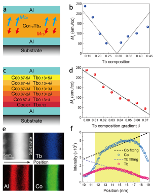 图1具有垂直元素浓度梯度的亚铁磁合金薄膜结构
