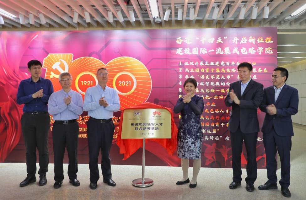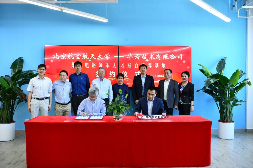 黄海军、曾凡丽为北航—华为集成电路领军人才联合培养基地揭牌。