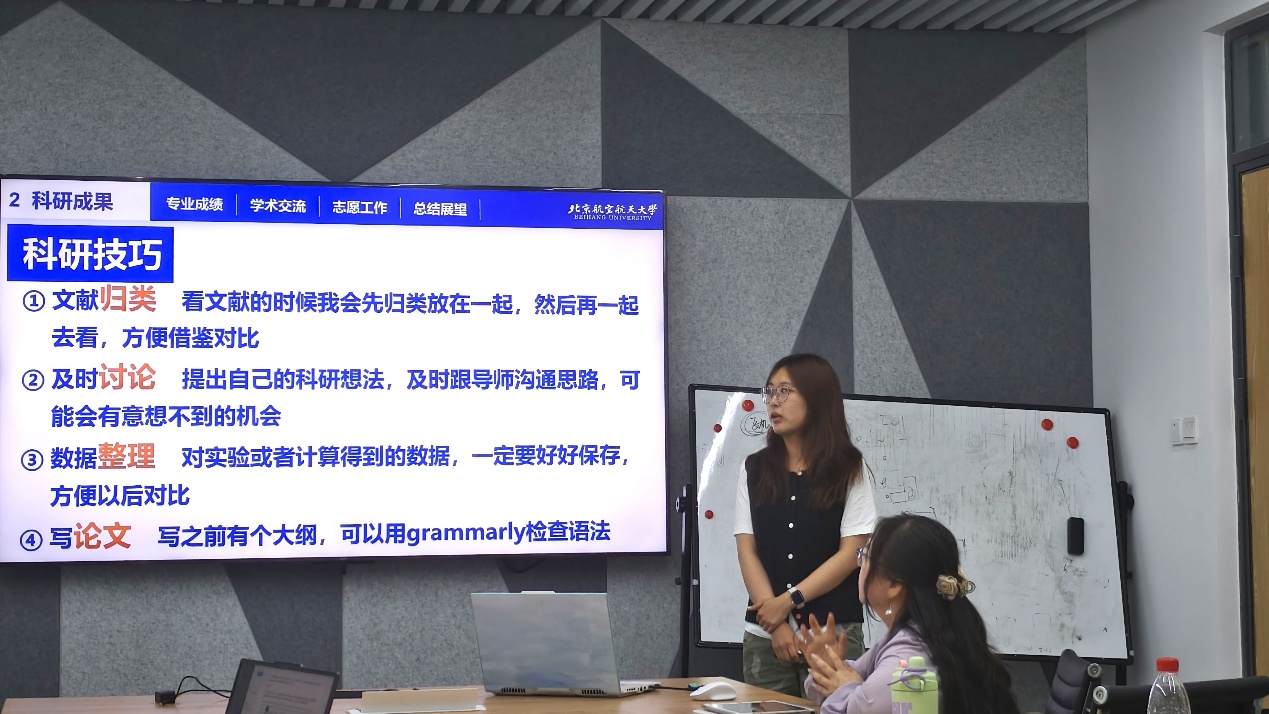 作为中共党员,李坤同学身兼党支部组织委员、研会就业部成员、导办助理多职。她建议:“员工工作不仅能提升文本撰写与项目管理能力,更是拓宽人际网络的重要契机。”同时她也强调,科研是生活的主旋律,但不应该是生活的全部,也要注意身心健康发展,休息是非常非常重要的环节,可以选择健身,逛公园,出去旅游等方式,积极尝试自己感兴趣的新东西,让自己好好放松,不要太疲惫。