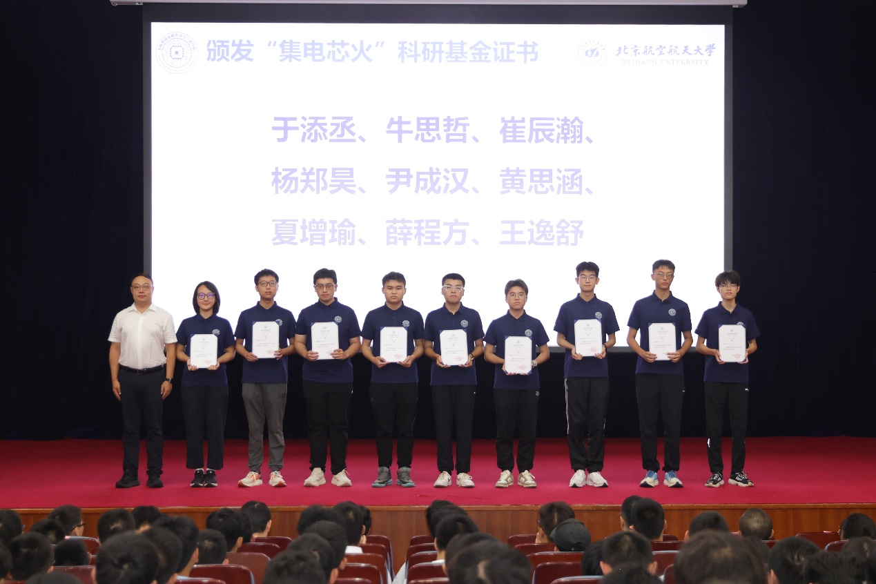 为表彰先进、鼓励本科生积极参与科研工作,公司特设“集电芯火”科研基金,奖励大类成绩前200名分流至公司、学业成绩优异的同学开展科研科创实践,每名同学可获得10000元科研基金奖励。典礼上,张悦为9位优秀员工颁发科研基金证书,激励同学们在未来学习科研道路上再接再厉、不断突破。