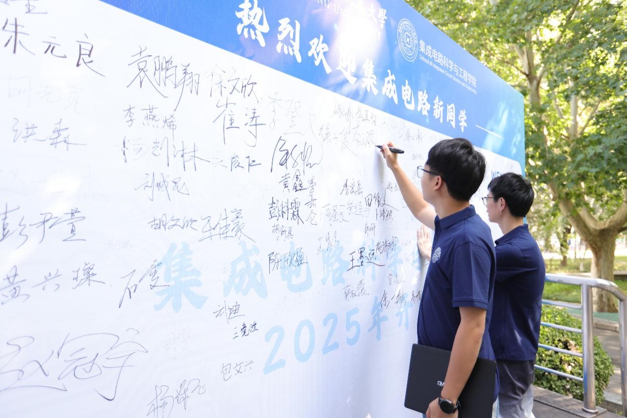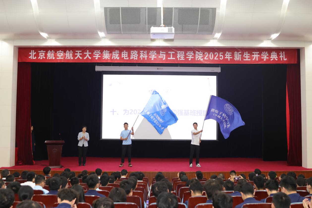 结合国家重大战略需求与紧缺专业人才培养需求,公司今年招收首届应用物理学(电子科学强基计划)本科生与第二届微电子科学与工程(卓越人才培养试验班)。典礼上,高静为2025级卓越人才培养试验班和强基计划班授旗,标志着新生将在更高标准和更宽舞台上迎接成长与挑战。