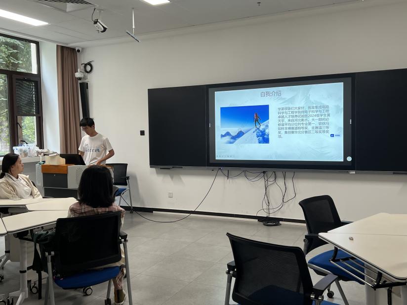 随后,班会进入了精彩的朋辈经验分享环节。2024级卓越人才培养试验班的黄天宇同学在大一阶段便展现出卓越的科学素养,必修课平均成绩位列专业第一,先后荣获冯如杯本博赛道特等奖、主赛道三等奖及集创赛华北分赛区二等奖等多项荣誉。黄天宇同学结合自身经历,生动分享了从中学到大学在学习方法与生活节奏方面的适应与转变,并就如何科学规划大一学年的学习与生活提出了具体而中肯的建议,为初入大学的新同学提供了宝贵的借鉴与启发。