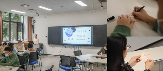 班会还开展了富有仪式感的“制作目标卡”活动。同学们在精心设计的卡片上记录下大学四年的阶段性目标与未来展望,每一笔每一划不仅承载着对自我的承诺,也寄托了对青春无悔的庄严期许。班主任张慧老师也在卡片上写下了对同学们的深切期许与寄语,为大家的成长与追梦之路增添了温暖与力量。