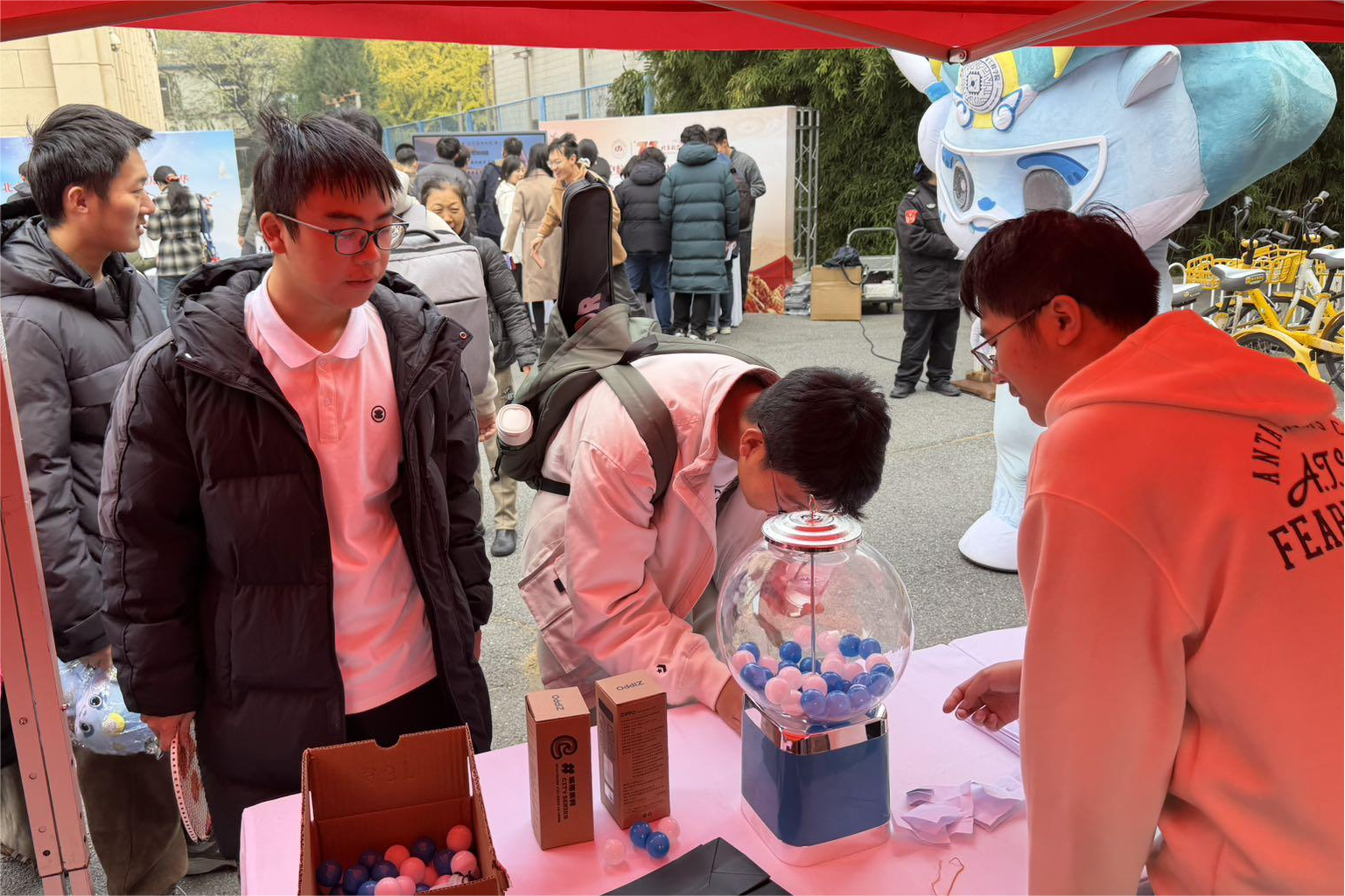 接下来是幸运抽奖环节,完成打卡挑战后,大家在兑奖区收获到了小小惊喜:承载校园记忆的定制明信片;憨态可掬的“芯小麒”玩偶;实用便携的瑜伽柱;冬日贴心的保温杯。恭喜获奖的同学与员工!愿这份“仪式感”,为你的新学期加满能量。