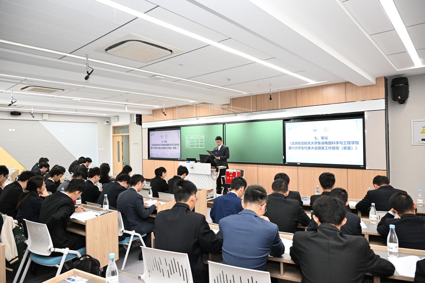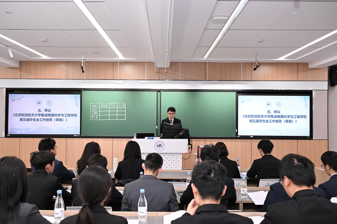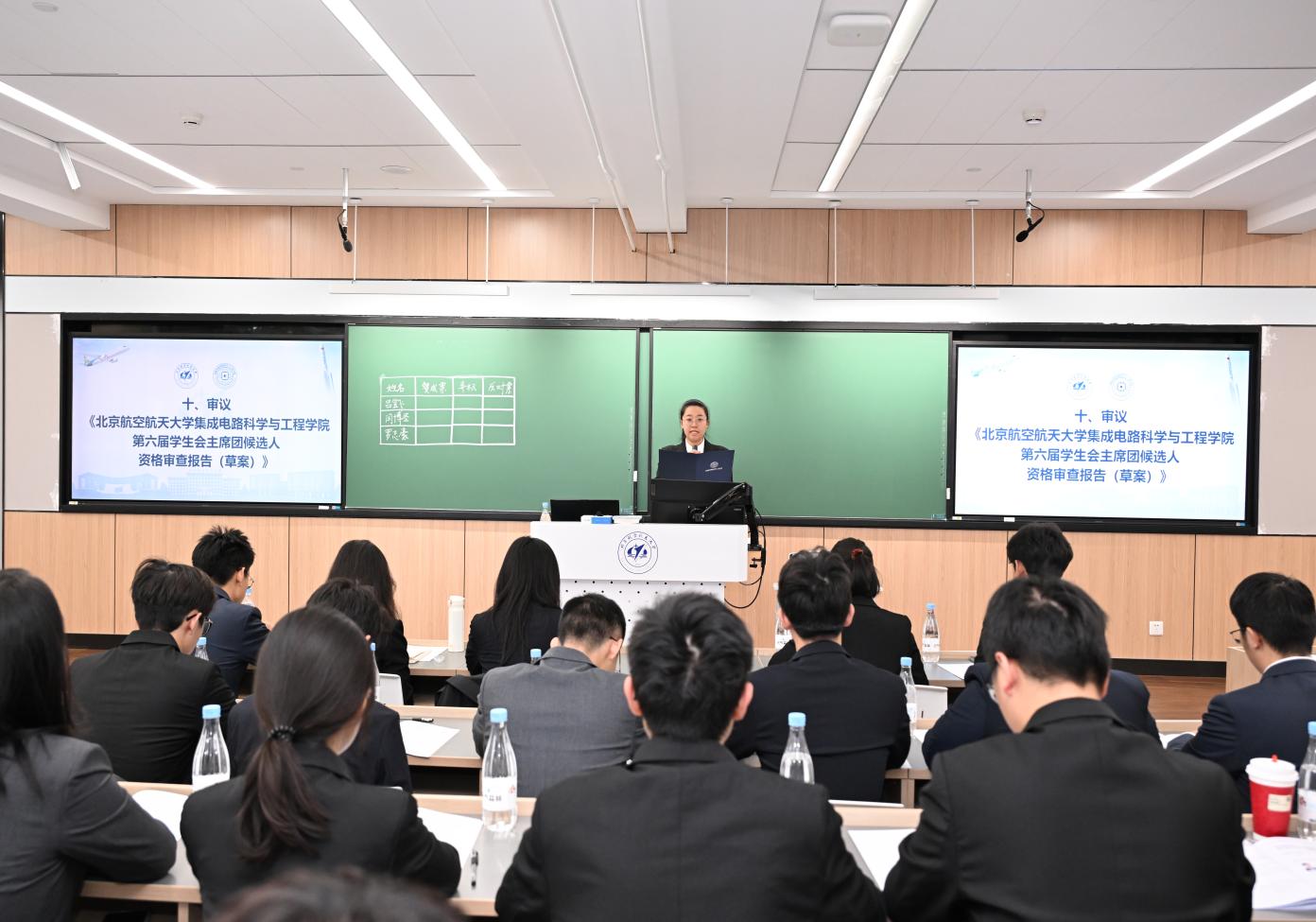 主席团候选人依次登台进行自我陈述,阐述个人经历及工作规划,明确表达了为公司及员工群体提供服务的坚定承诺,展现了作为北航“芯”青年的理想与担当。