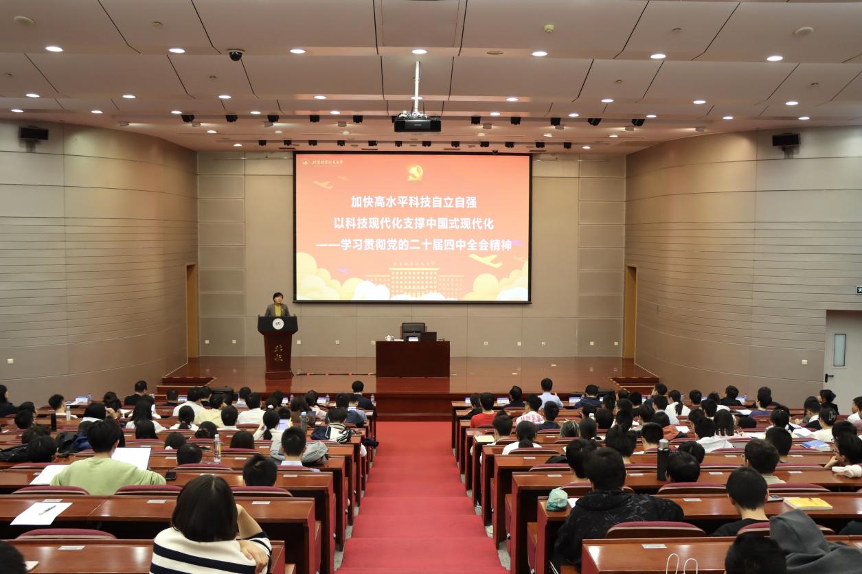 在主题党课中,李蕾教授系统解读了党的二十届四中全会关于科技现代化的核心要义,围绕“科技强—产业强—经济强—国家强”的逻辑链条,深入阐释了科技自立自强作为中国式现代化战略支撑的重要意义。她强调,必须牢牢把握科技创新这一“先手棋”,以更多原始性、引领性创新推动新质生产力发展,助力我国在全球科技竞争中赢得主动。